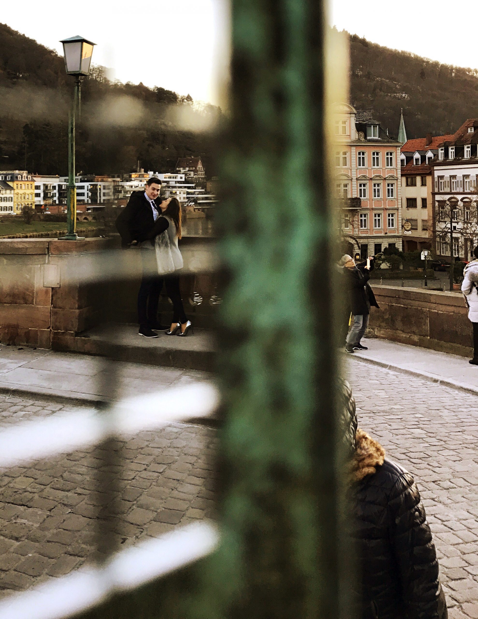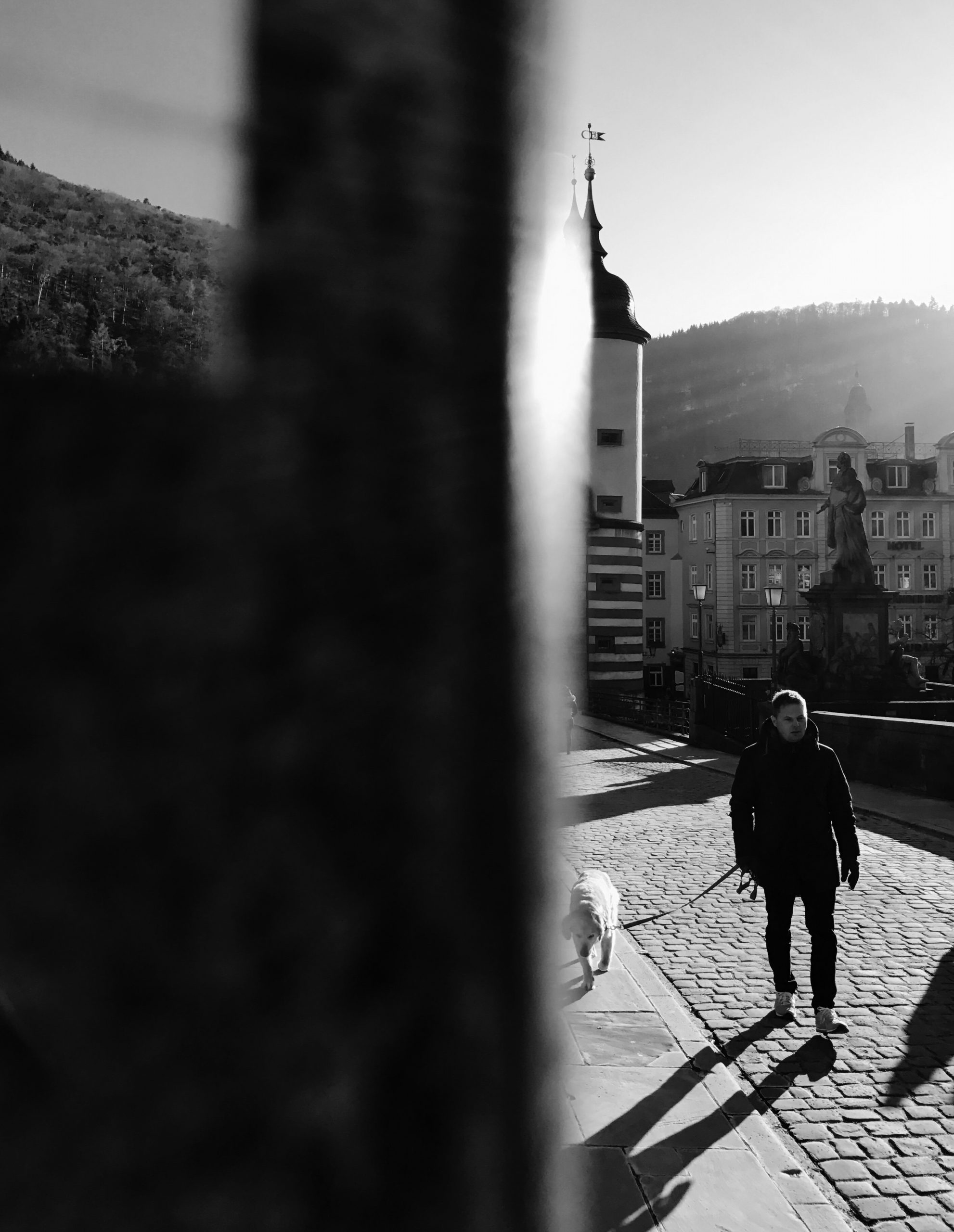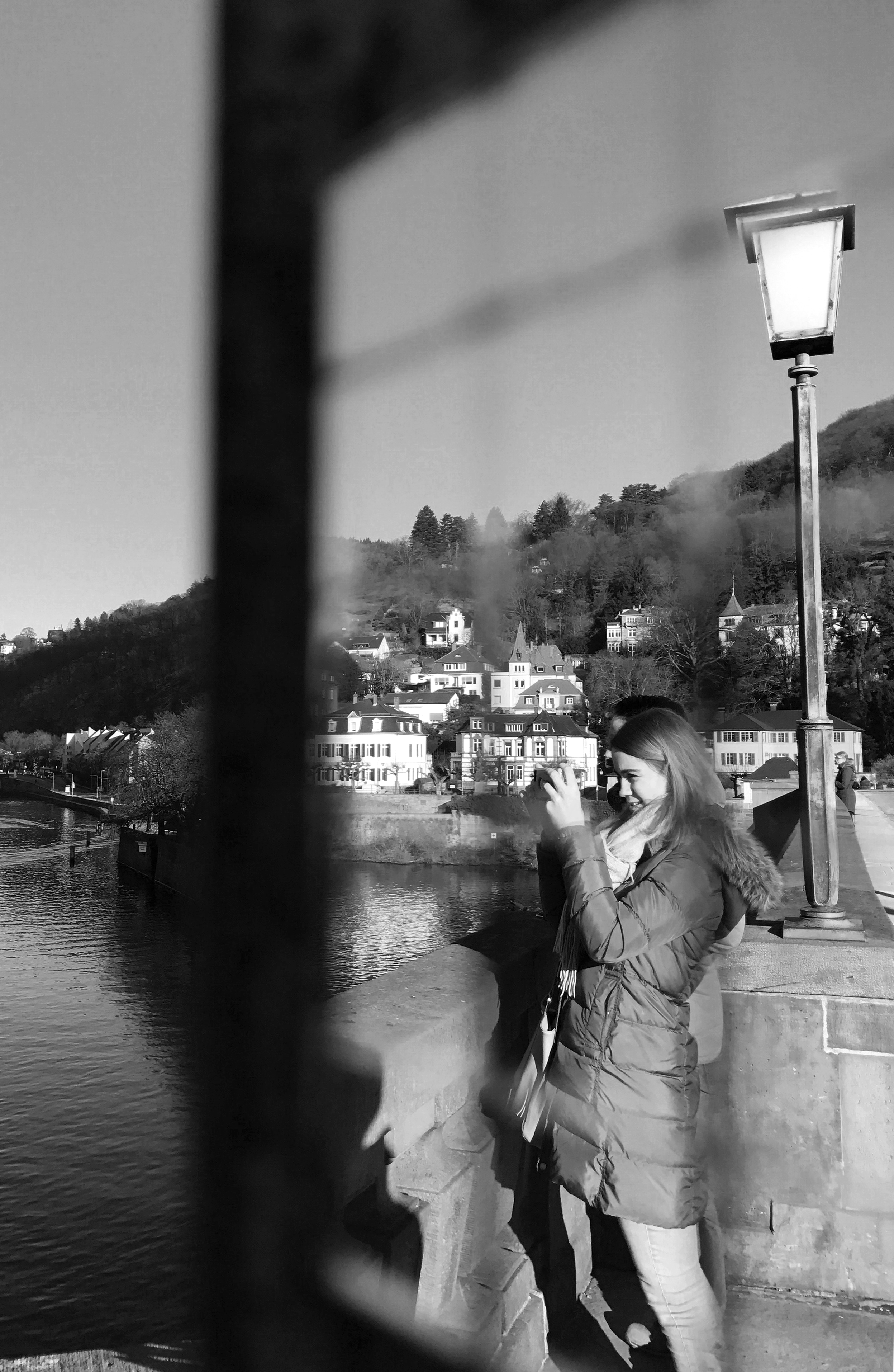 Die Alte Brücke ist eines der beliebtesten Touristenziele der Stadt, von wo aus täglich hunderte Besucher die wunderschöne Aussicht auf das Schloss und den Neckar genießen. Allein an diesem Nachmittag kurz vor Sonnenuntergang standen mindestens ein Dutzend Besucher entlang des Brückengeländers. Manche in Gruppen, manche alleine, und die meisten davon machten Selfies mit ausgestreckten Armen. Andere hatten sich mit ihren großen DSLR-Kameras und schweren Stativen in Stellung gebracht und bemühten sich sichtlich um den bestmöglichen Bildaufbau zwischen Fluss, Stadt und den sanften Hügeln im Hintergrund.