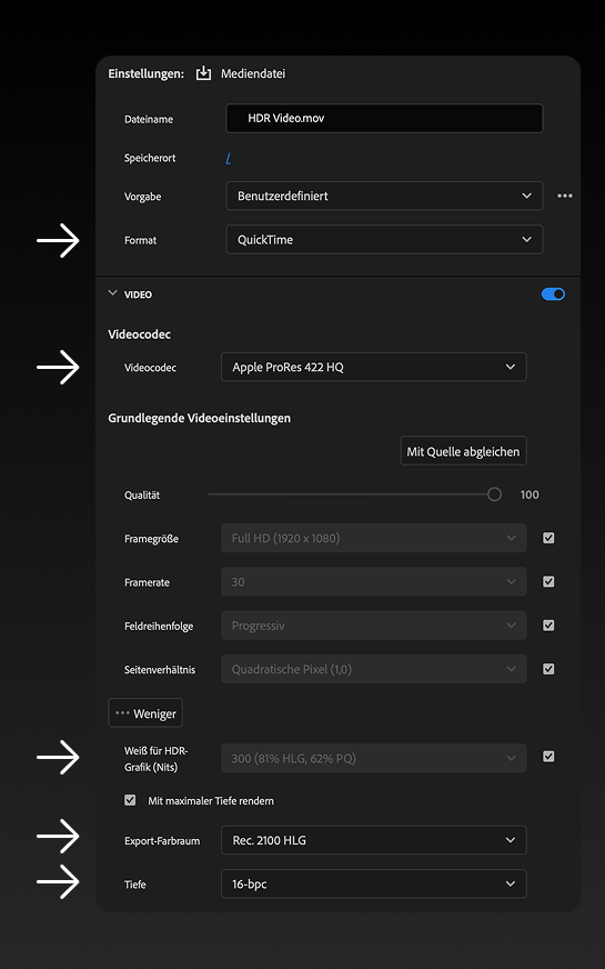 HDR Videos aus Premiere Pro exportieren