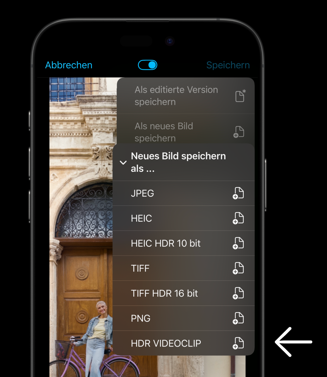 Wählen Sie die Option „Neues Bild speichern als …“ und anschließend „HDR VIDEOCLIP“.