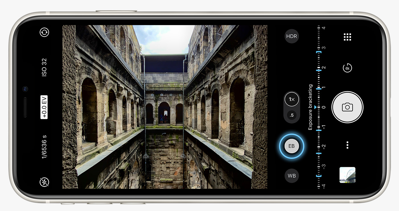 LENS: You can shoot brackets with all available lenses of your device – from ultra-wide to tele. As usual, the front-facing camera and the ultra-wide lens don’t support the RAW file format (iOS limitation).