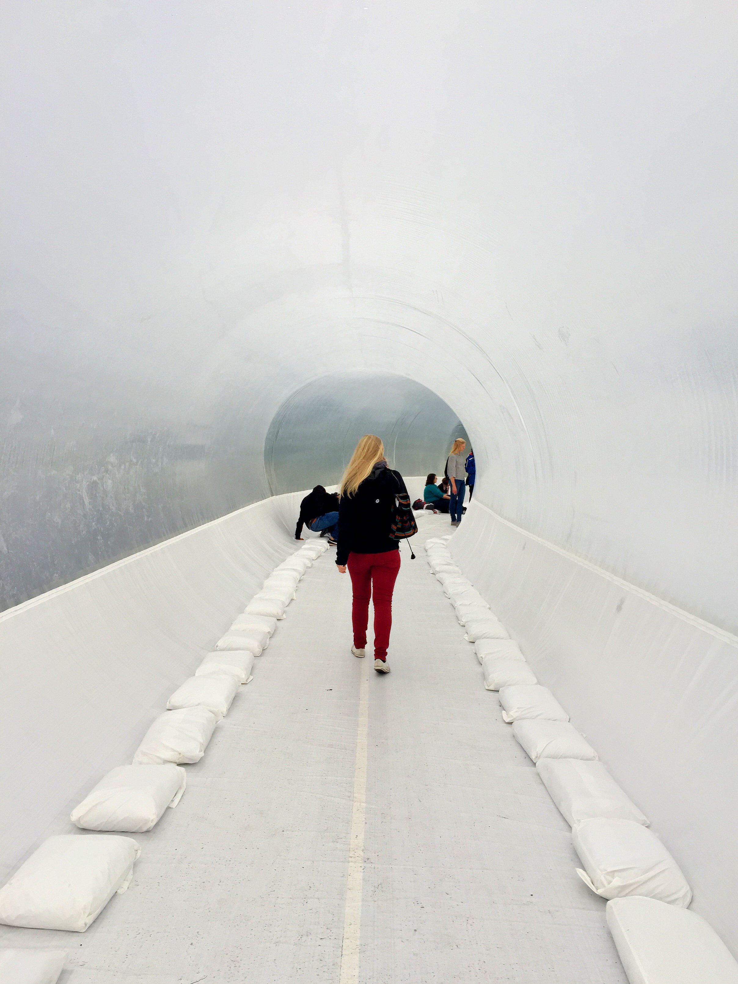 Taking shelter inside the exhibit!