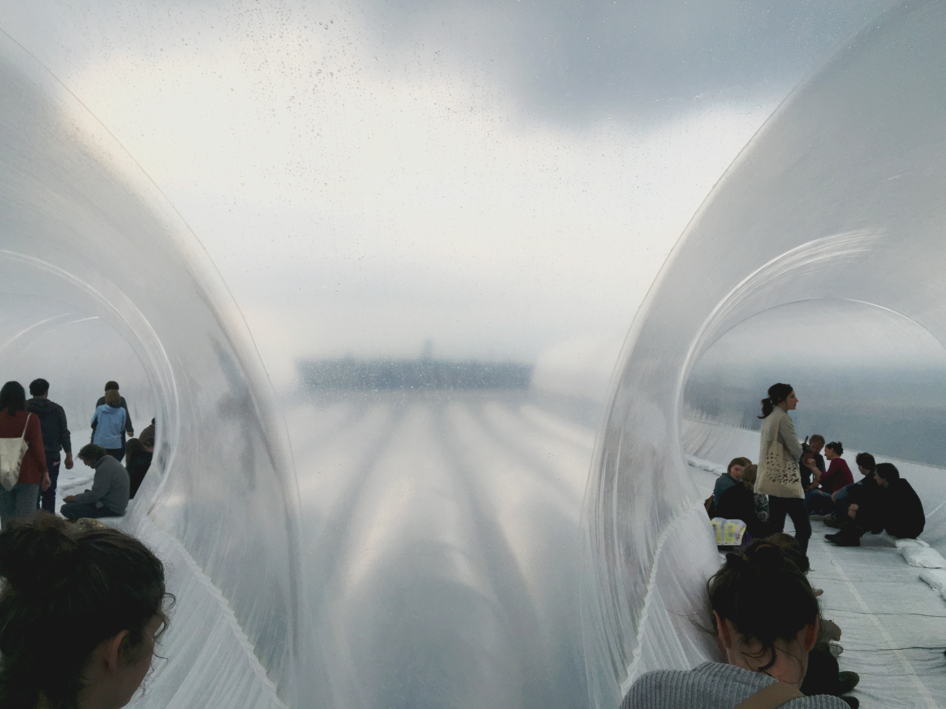 Luckily, the exhibit I was going to see happened to be a giant inflatable lifeboat. Very convenient for keeping dry! The exhibit was called LIVEBOAT – CHAPTER 5 and was created by the Berlin art group Plastique Fantastique. The work addresses the plight of immigrants who set sail from their homelands to seek better lives abroad. Inside, there was audio of a man’s voice who describes his harrowing experience leaving Syria and coming to start a new life for himself in Germany.