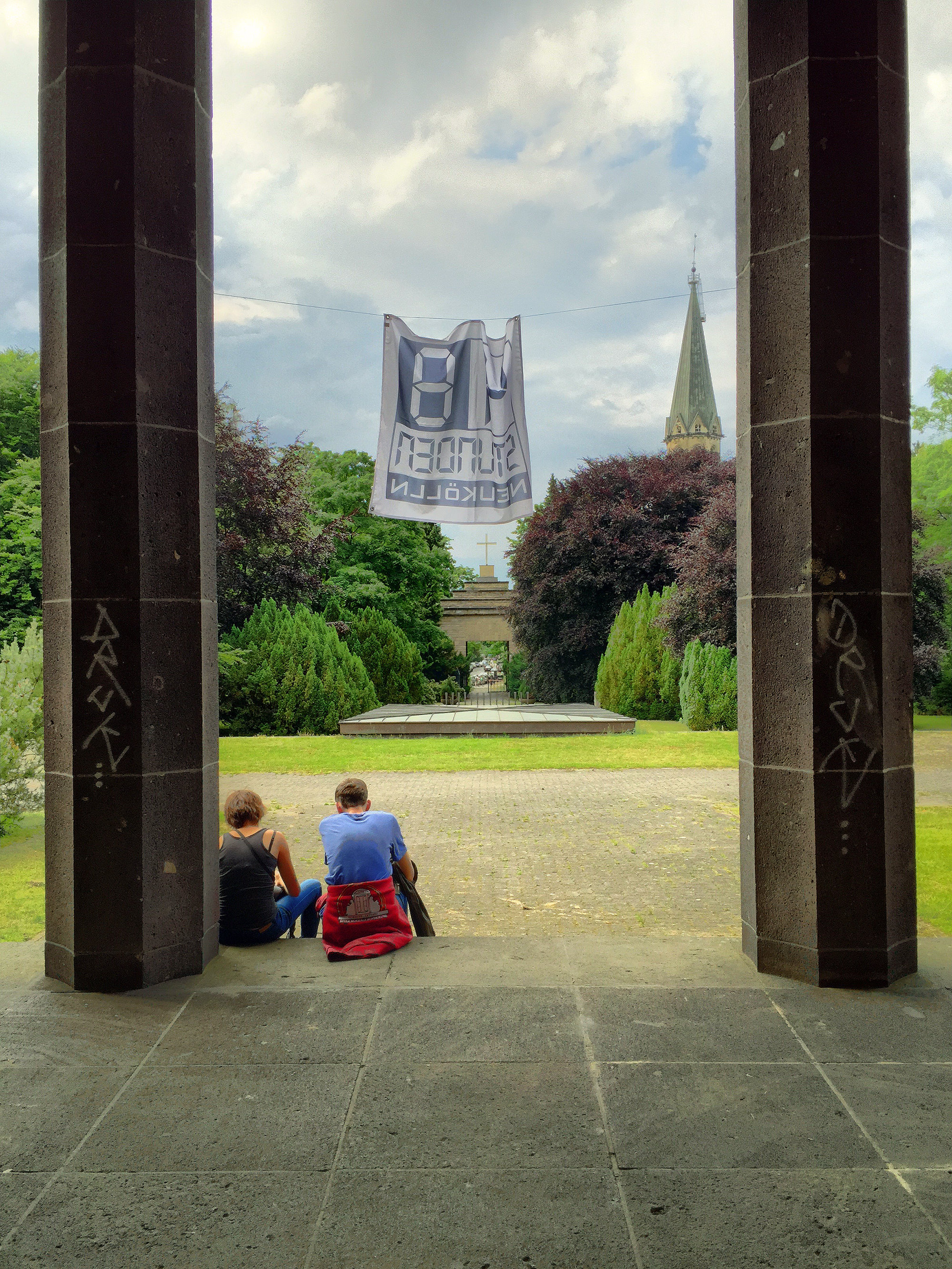 When I left my front door, the sun was shining on a perfect Summer’s day. When I stepped out from the Neukölln U-Bahn station 20 minutes later to see an exhibit at Tempelhofer Feld, I noticed that dark, ominous clouds had already formed in the sky above. By the time I made it out to Tempelhofer Feld on foot, thunder struck and rain began coming down hard. I was soaked within a few minutes, but I managed to find some places to take shelter so that I could continue to document my day.