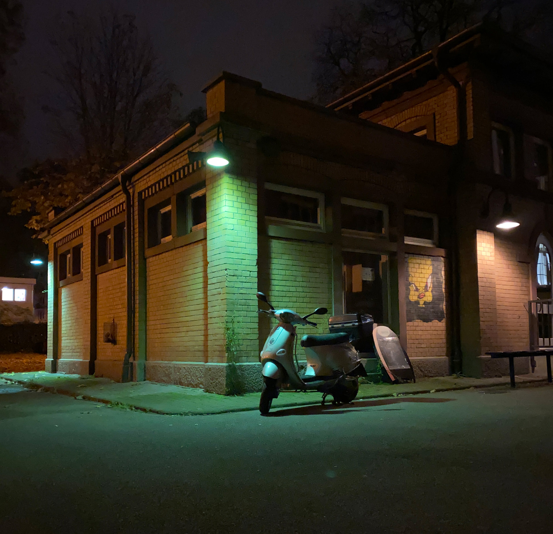 When taking a photo in low light, Deep Fusion can help you capture a lot more detail. The Deep Fusion image is sharper, more detailed, with even less noise. Especially look at the trees in the back, the texture of the brick wall, and the ground in the front. (Both images were taken with an iPhone 11, photos are completely unedited)