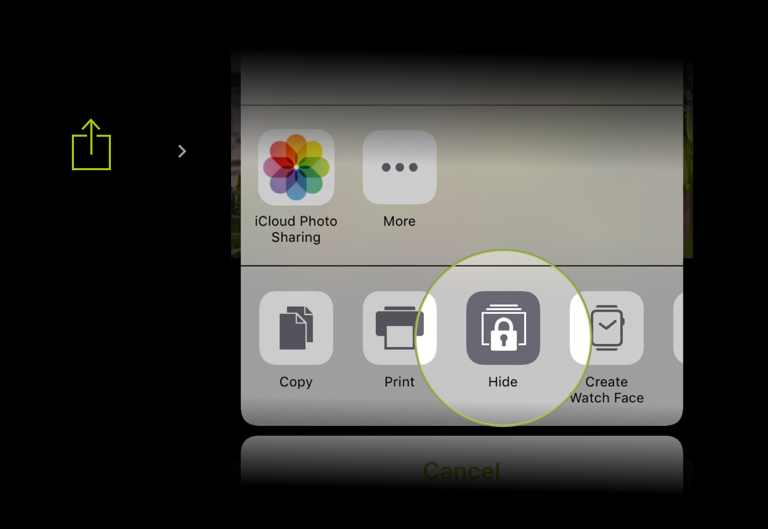 The “Hide” activity is only visible after the Private Lightbox in-app purchase has been unlocked: Settings > Save Location > Private Lightbox.
