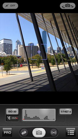 Note: You can also use the ProCamera Histogram to check your exposure. The histogram provides red warning bars for under and overexposure – as shown in the above-left screencap. More information on the ProCamera histrogram can be found in this article.
