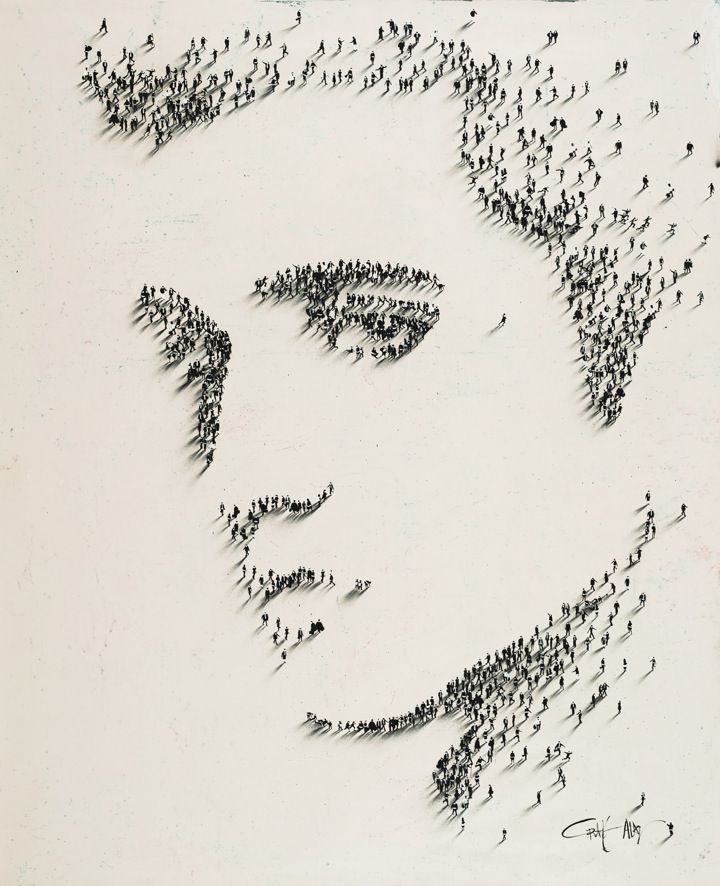 The photos below were created by photographer and evidently skilled ‘choreographer’ Craig Alan. Using people as pixels, Craig created grand scale aerial portraits of mega stars — Monore, Elvis, Hepburn and Michael, et. al. Aligning easily distracted volunteers into the exact right place and time is no small feat. Think ‘herding cats,’ and you pretty much get the idea. Read more about Craig Alan and his artistry.