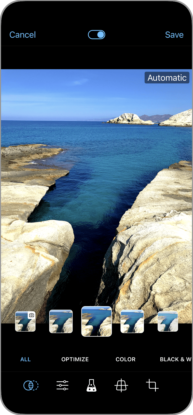 Correcting perspective distortion gives a more professional appearance to your photos. Swipe on the photo to manually adjust the perspective or tap Auto Correct for an immediate adjustment.
