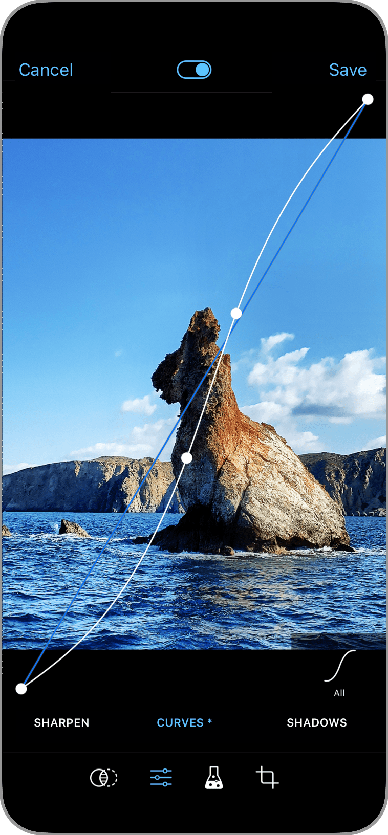 A whole range of professional editing tools: Adjust characteristics like brightness, saturation, sharpness and contrast to fine-tune your photos.