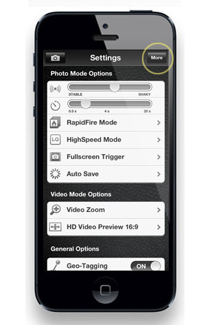 First tap the PRO button on the Capture Screen and select Settings.