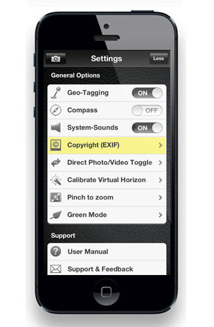 One simple way you can help secure your photos is to add your name and details to the EXIF data that is embedded in your picture – almost like a virtual watermark. ProCamera is one of a few camera replacement apps that allows you to do this, here’s how: