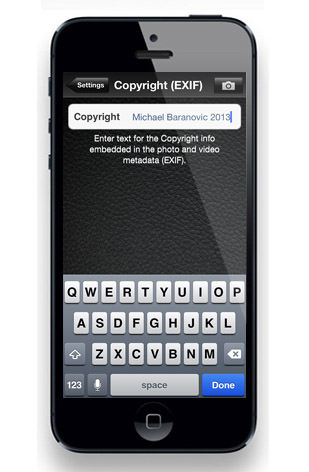 Now you can enter your name and any other information you want embedded in the photo. Press Done when you’re finished.