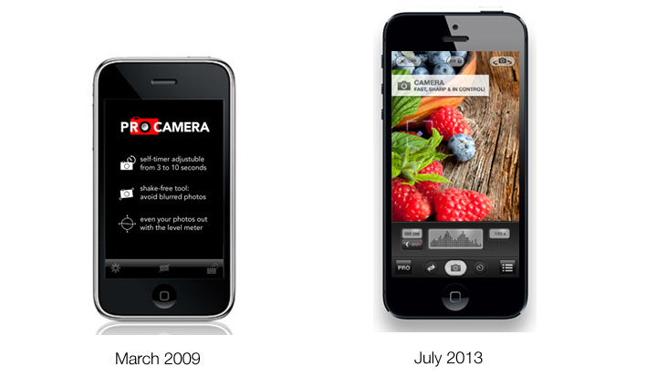 ProCamera V1.0 (March 2009) compared to latest ProCamera 4.1 (July 2013)