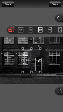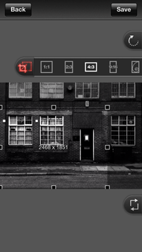 | First open ProCut | Then open the crop dimension constraint tool and click on 4:3 pressing it a second time moves it from vertical to horizontal. | I’m cropping into the bottom left corner of the photo to draw attention to the window detail and door. |