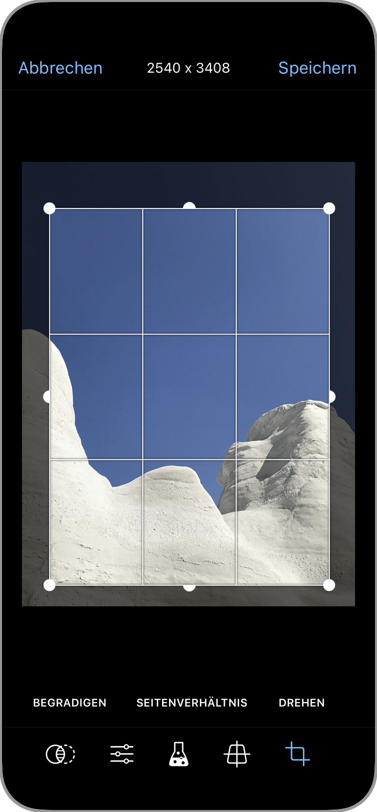 Verabschieden Sie sich von schiefen Horizontlinien: Richten Sie Bilder auf und schneiden Sie sie im passenden Format zu, damit sie bestmöglich wirken.