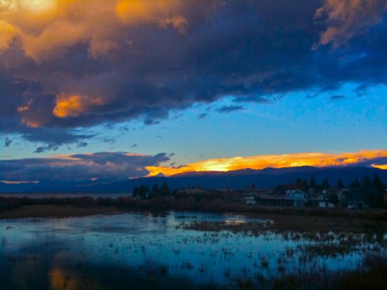 I recently moved to the Tahoe Keys in South Lake Tahoe, CA, and yesterday I happened to look out my window at a particularly colorful late afternoon sky. Having now upgraded to ProCamera 3.3, I thought I’d head out on my decks and capture a few iPhone 3GS shots. With Anti-Shake and Full Res Zoom on, I began to snap away at the cloud-filled horizon. By the time I finished my ProCamera edits (ProLab, ProCut & Pro FX), darkness had set in. There was a chill in the air and a steady breeze was begining to whip across the Lake. But I never bothered to check the weather report … my first mistake. My newly taken iPhotos would have told any amateur meteorologist “there’s a storm comin’ in” ~ last line from Terminator #1.